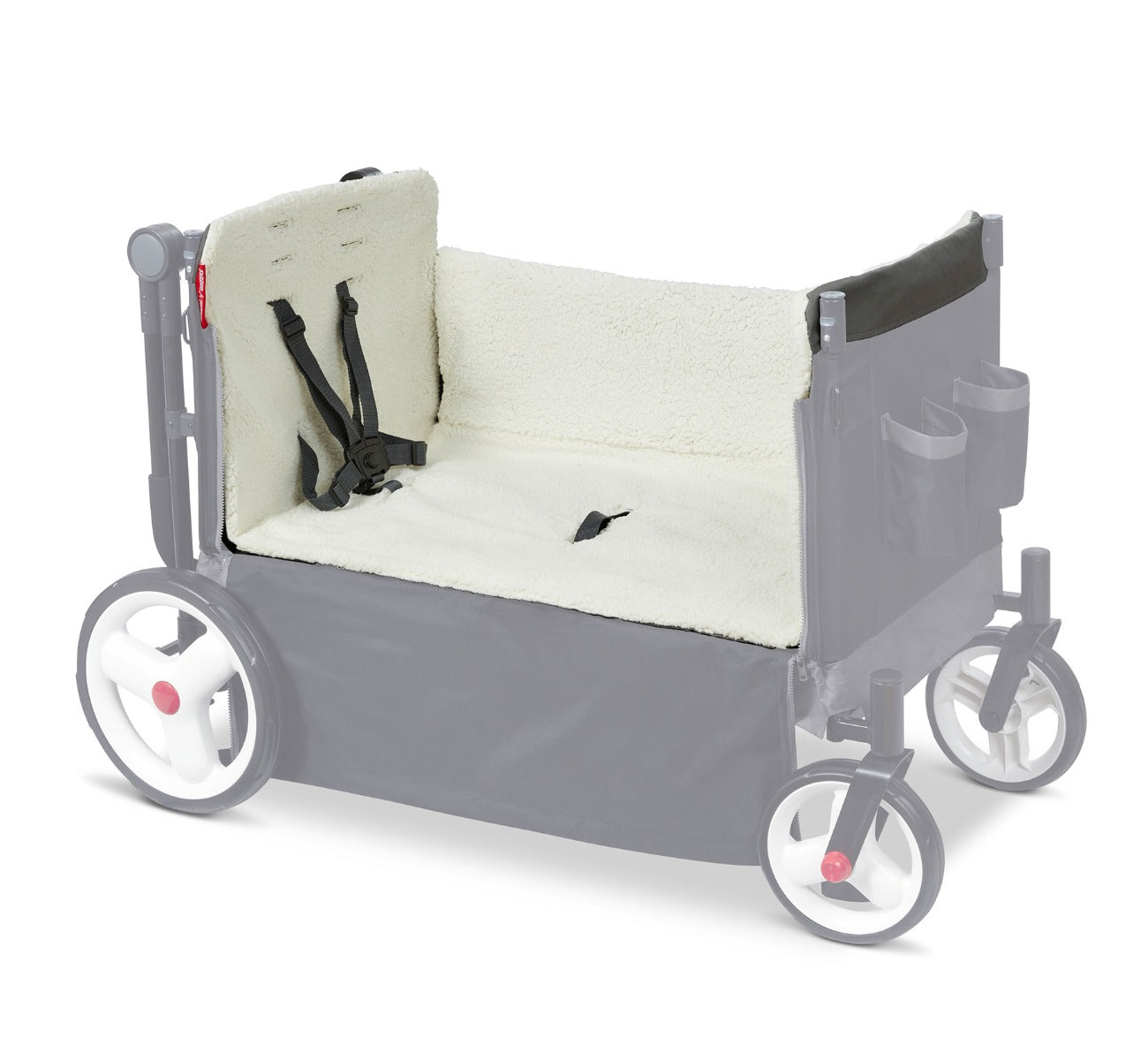 Designed for compatible use with 5-point safety harness on wagon: simply slide the buckles through the slits in the liner