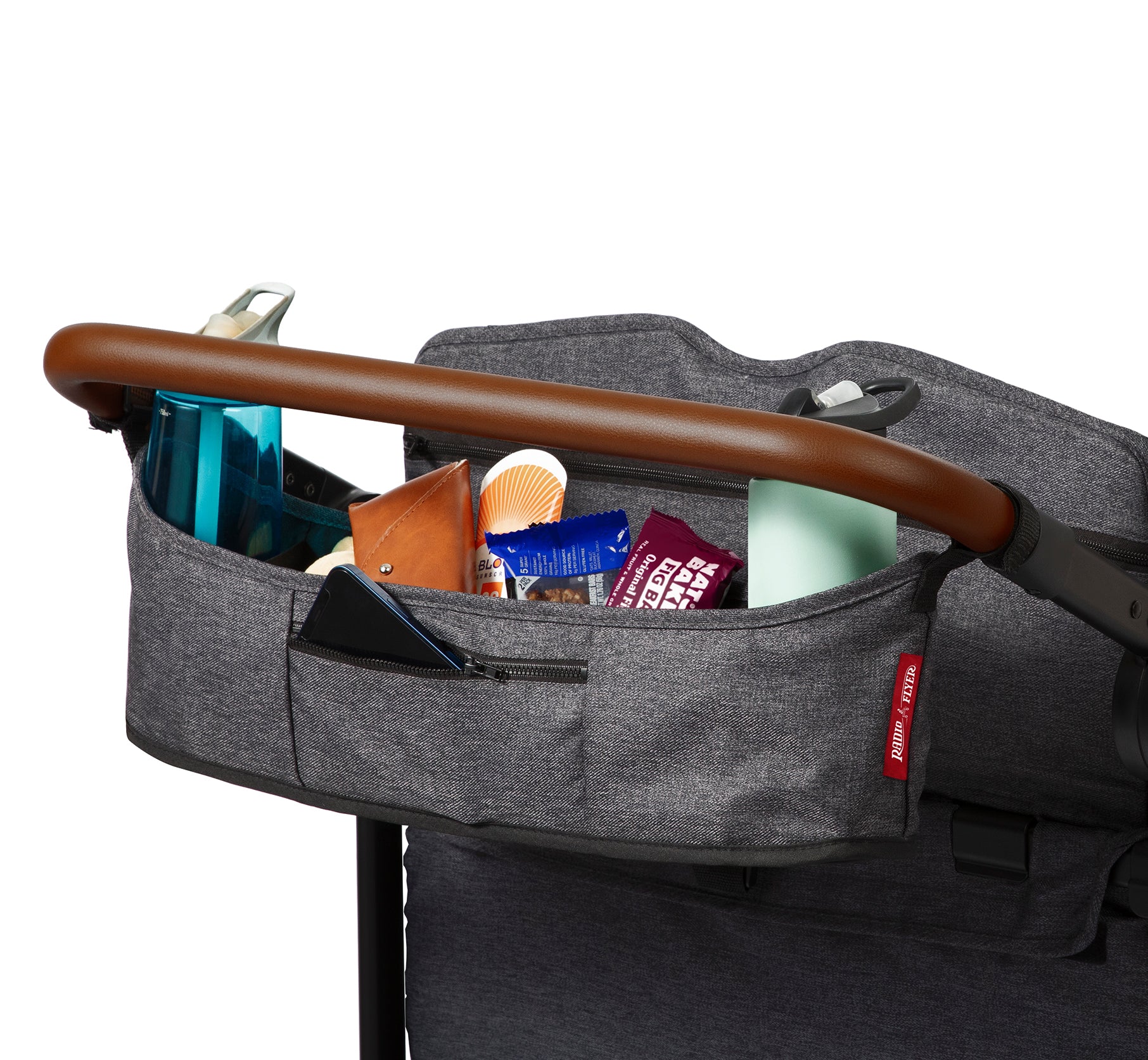 XL rear storage bag. parent caddy on push handle. & two removable cupholders